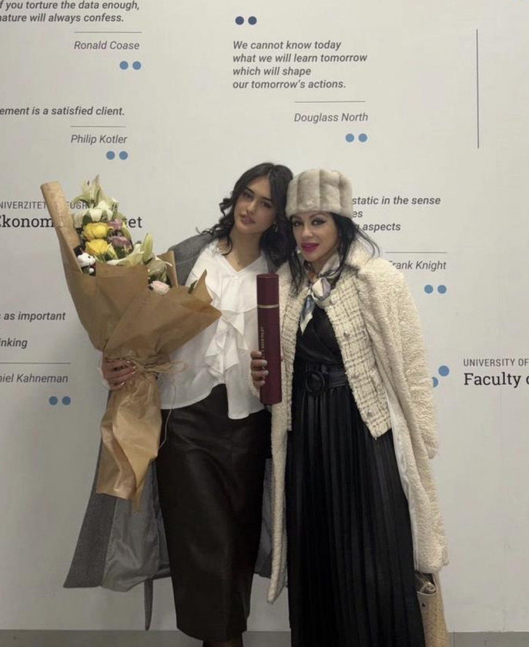 Pevačica se uspehom svoje jedinice pohvalila na Instagramu gde je objavila fotografije sa dodele diplome koju je vendi ponosno držala u svojim rukama. Ćerki je poklonila buket cveća.