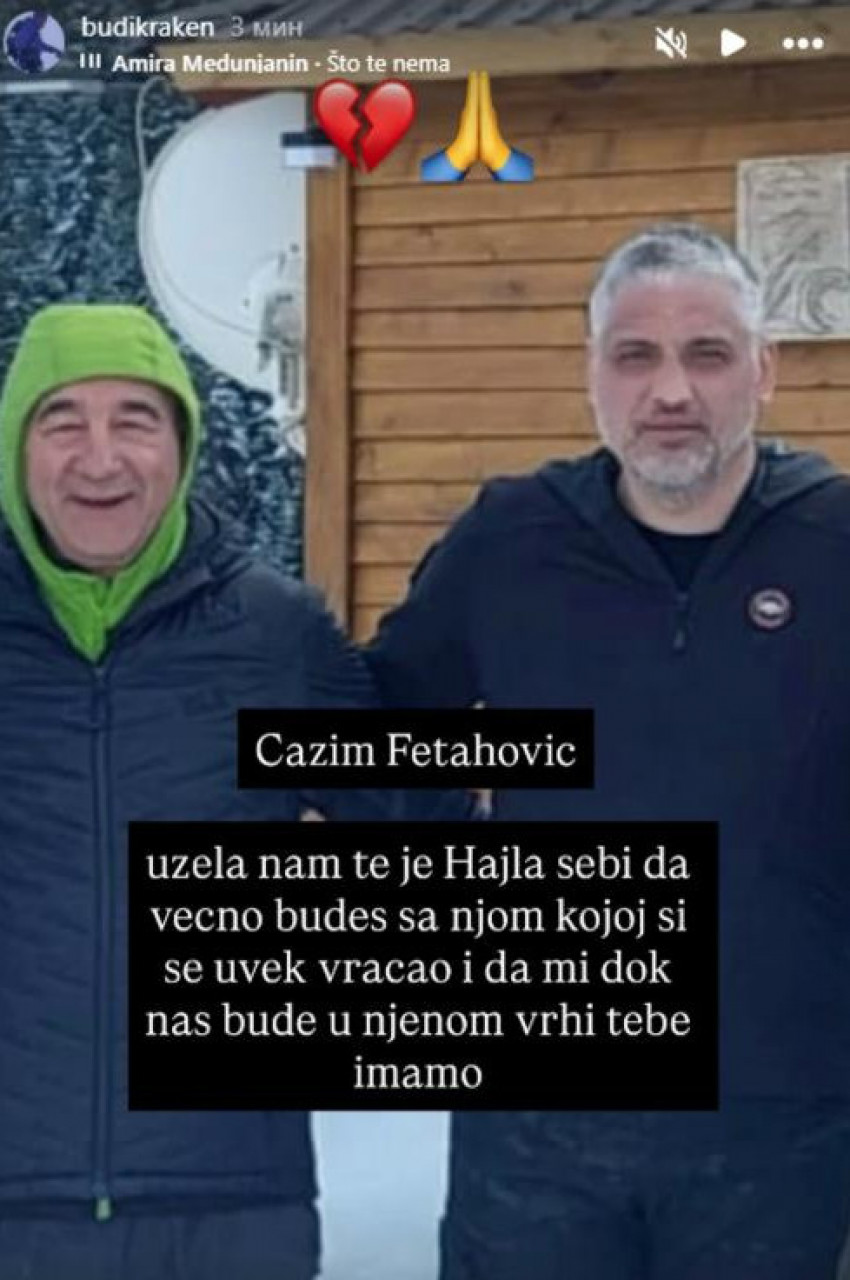 - Ćazim Fetahović. Uzela nam te je Hajla sebi da večno budeš sa njom kojoj si se uvek vraćao i da mi dok nas bude u njenom vrhu tebe imamo - napisao je on uz emotikon slomljenog srca i pesmu "Što te nema".