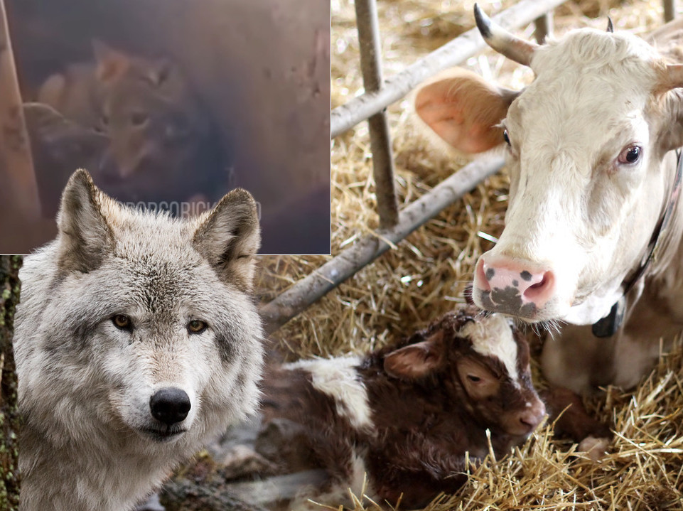 Na drugom snimku koji je objavila Podgorica.info vidi se kako se vuk polako pridigao i prešao iz jednog kraja štale u drugi deo objekta, dok su u štali sve vreme bile krave i telad.