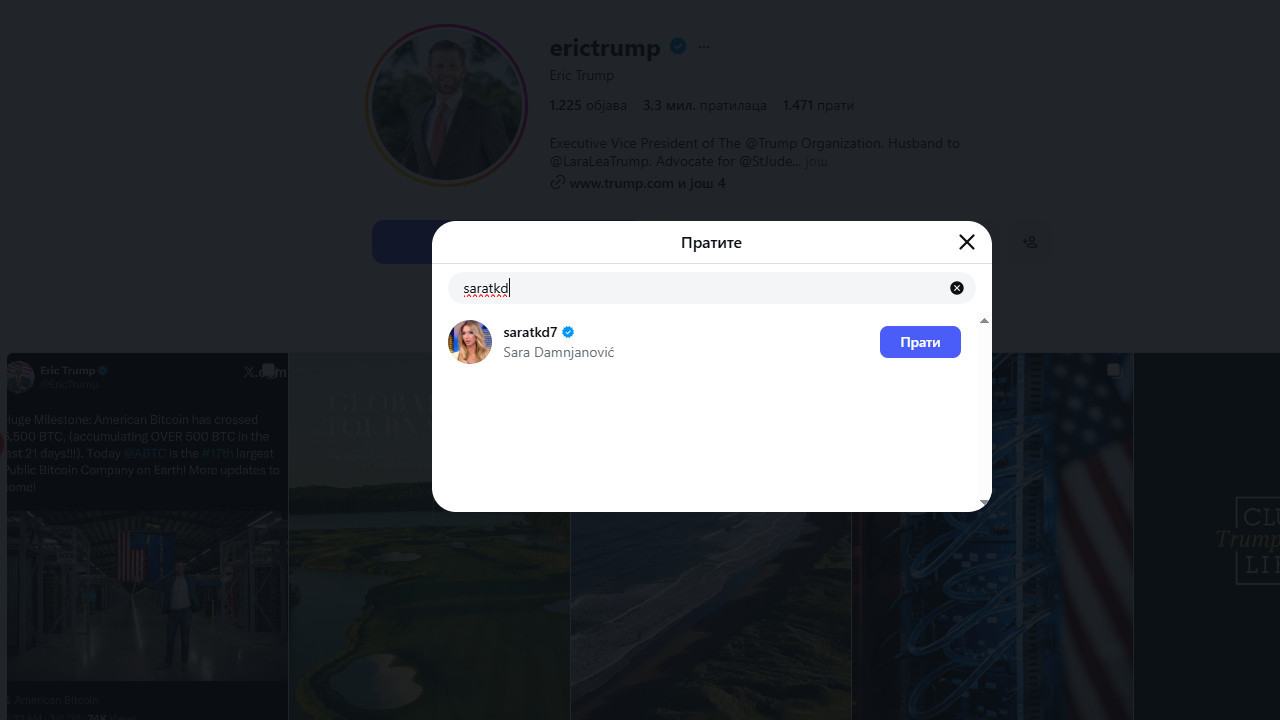 Pre nekoliko dana ju je na Instagramu zapratio sin Donalda Trampa, Erik.