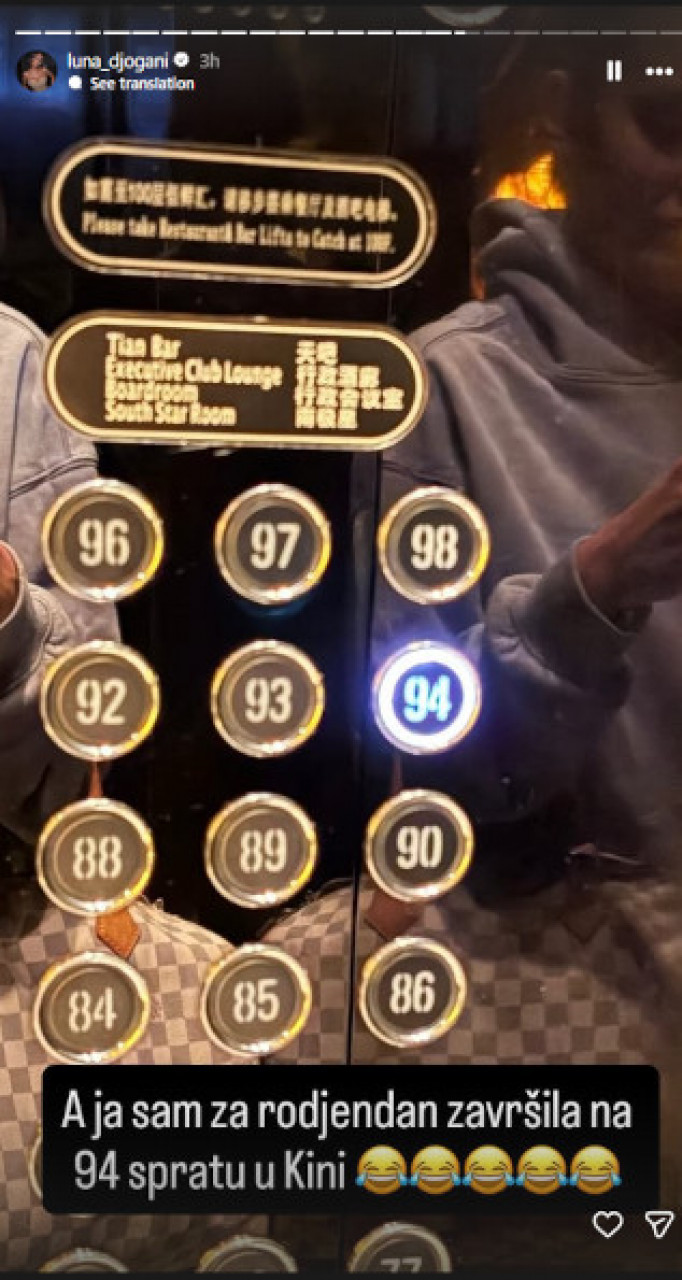 - A ja sam za rođendan završila na 94. spratu u Kini - napisala je ona u opisu fotografije koja je nastala u liftu hotela.