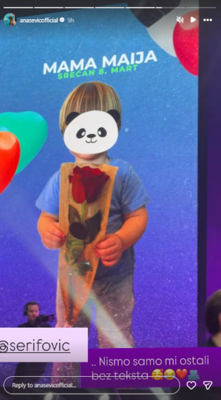 Dečak je u ruci držao crvenu ružu, a iznad je pisalo: "Mama Maija, srećan 8. mart".
