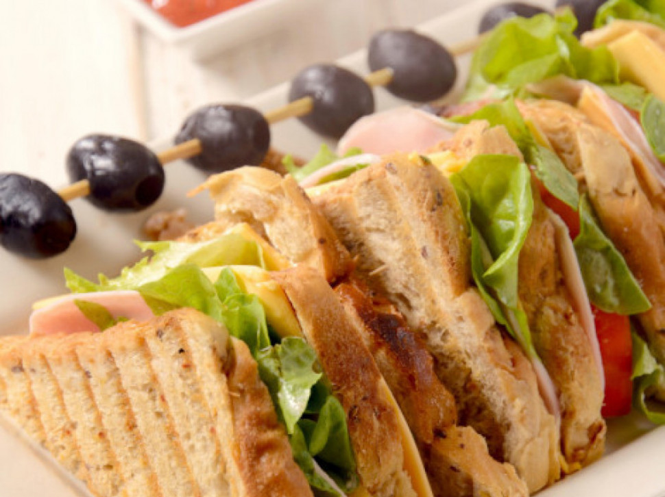 Rernu zagrejte na 180 stepeni. Poređajte tost hleb da prekrije dno pleha. Onda ga premažite tankim slojem kečapa pa rasporedite šunku i polovinu rendanog kačkavalja. Potom preklopite preostalim kriškama hleba. Polako pritisnite. Zasebno umutite jaja pa dodajte so, mleko, pavlaku, jogurt i dobro sjedinite. Potom prelijte preko složenih sendviča i ostavite par minuta, da upije deo smese. Nakraju pospite ostatkom kačkavalja po vrhu. Pecite sendviče oko 180 stepeni, pa ostavite par minuta da se prohladi.