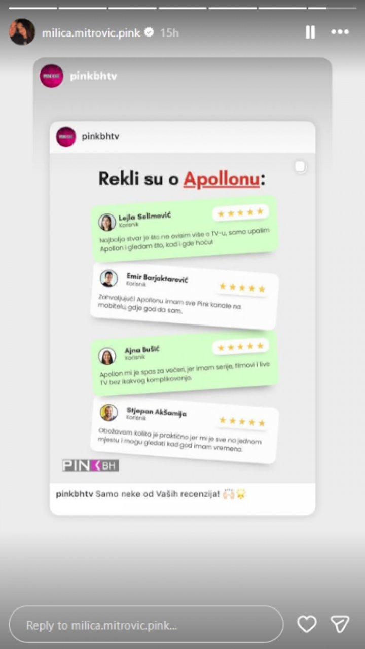 Milica je odmah podelila komentare Bosanaca na jednu od njihovih platformi preko koje tamo mogu da prate Pink, otkako je BH Telecom ukino ružičastu TV.