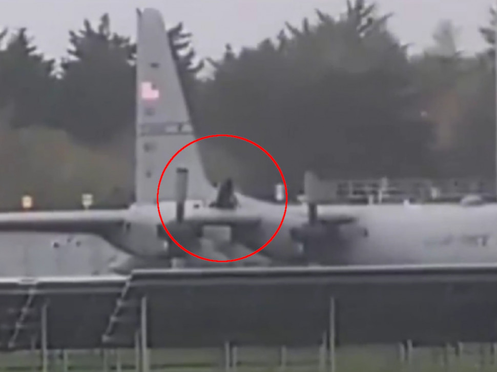 Snimci koji kruže društvenim mrežama prikazuju muškarca kako se penje na transportni avion američkog ratnog vazduhoplovstva C-130 Herkules, koji je bio parkiran na udaljenoj pisti u okrugu Kler.