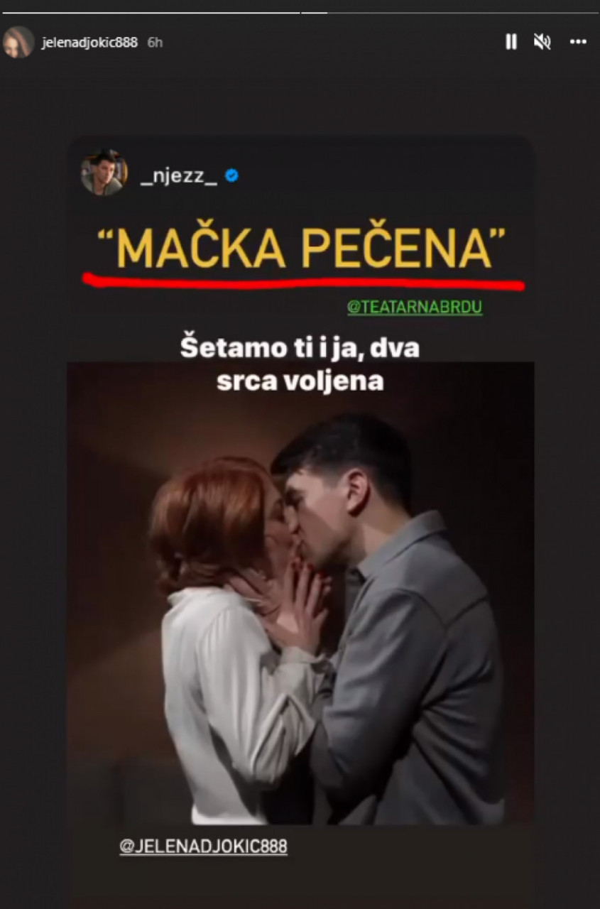 Ona je sada najavila predstavu u kojoj igra sa glumcem Viktorom Savićem tako što je podelila njegov stori sa fotografiju na kojoj se njih dvoje ljube, u predstavi.