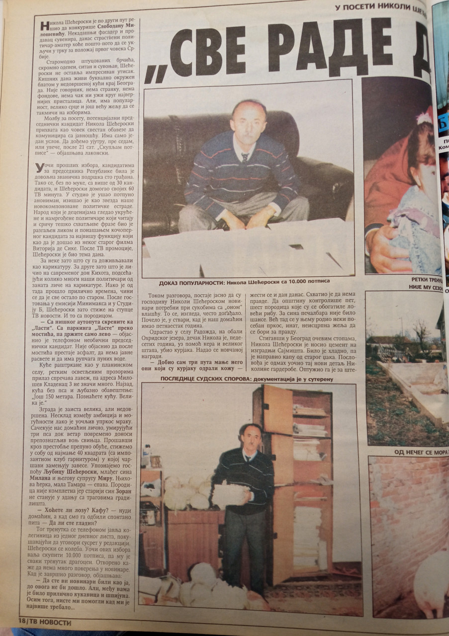 - Smislili su kako da me spreče da se kandidujem - govori sa srdžbom naš domaćin. - Potpisi, navodno moraju da budu na njihovim formularima, a uz njih matični broj. Zašto matični? Pa da bih gubio više vremena. Sve rade da me osujete. Pitao sam gde to piše, neka mi pokažu. A šta kaže jedan činovnik? Kaže: "Nemoj, bre, Nikola da zajebavaš!"
