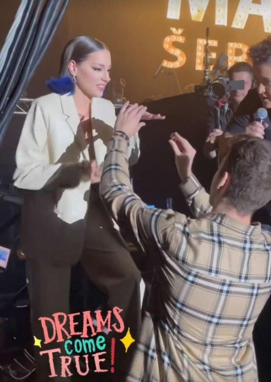 Celom događaju kumovala je upravo Marija Šerifović koja je omogućila dečku da dođe do bine, klekne ispred Sare i pita je da se uda za njega.