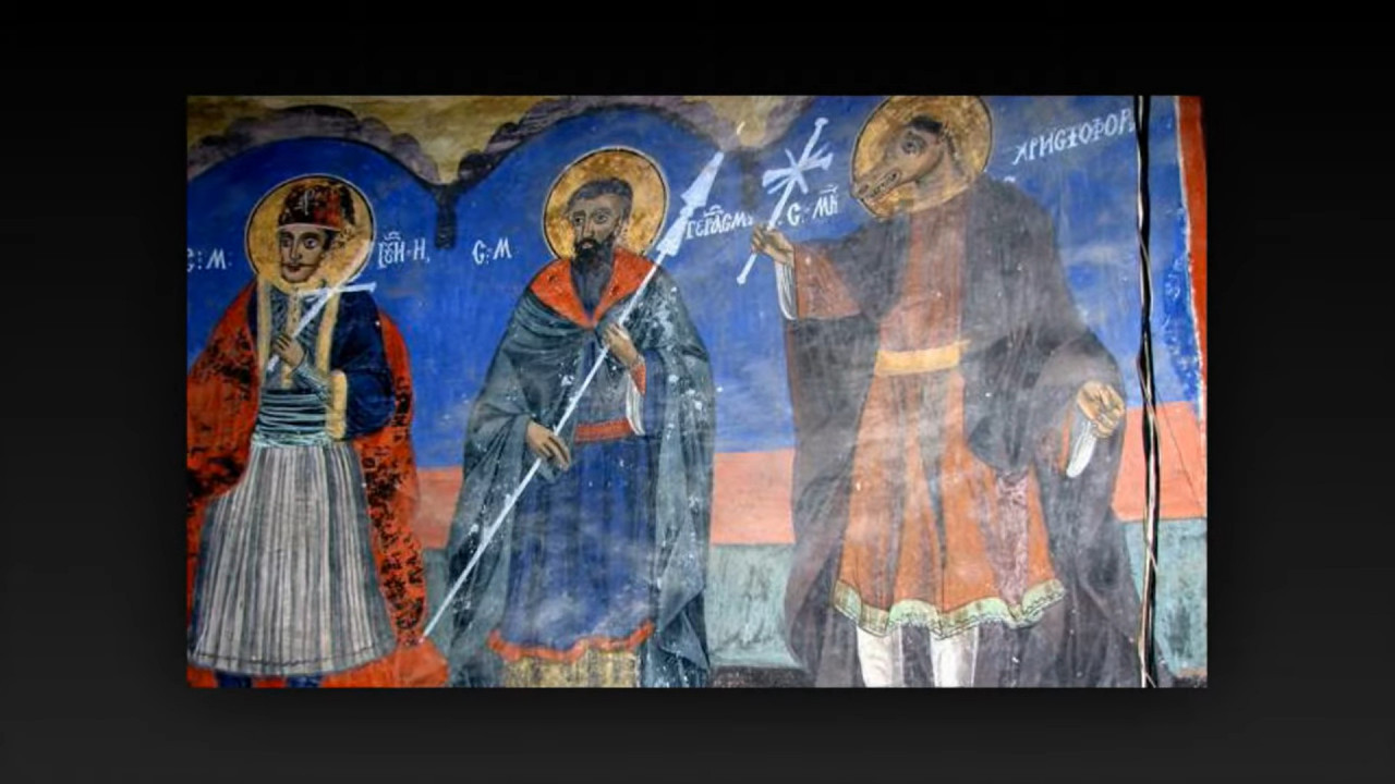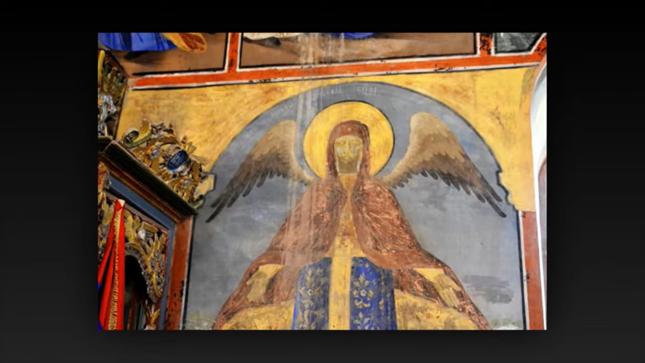 Iznad freske, međutim, postoji bledi natpis koji ovu misteriju možda malo rasvetljava. Piše: “Da nas Bogorodica svojim krilima čuva i štiti od svih napada zloga koji pokušava da nas pokoleba u našoj veri”.