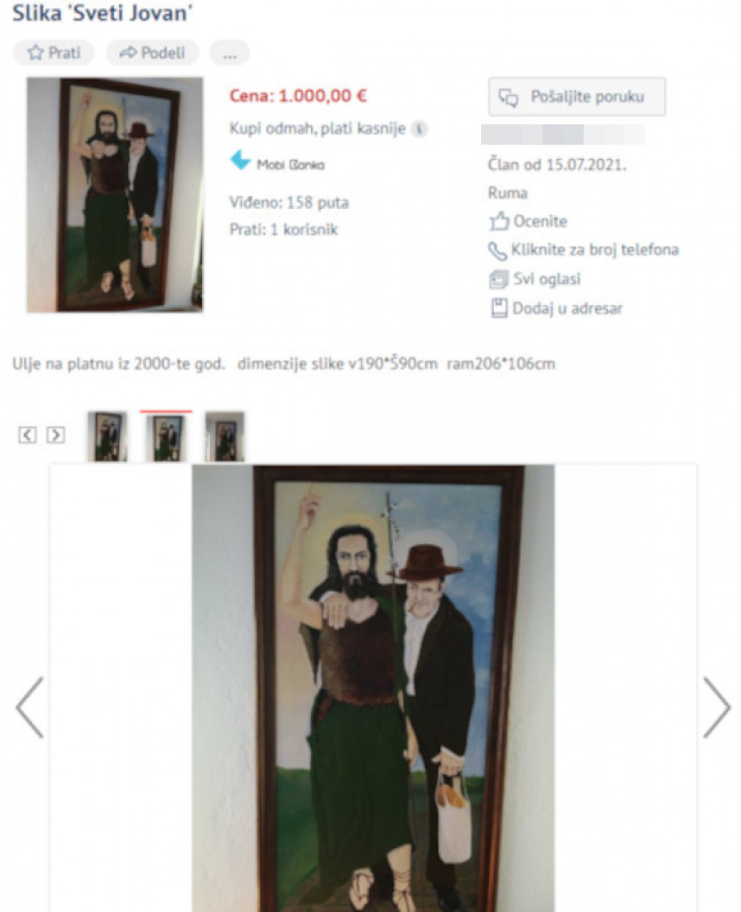 Na internet stranici Kupujemprodajem pojavio se neobičan oglas pod nazivom Slika "Sveti Jovan".