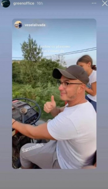 NJihov prijatelj je objavio snimak, na kojem se vidi kako Sale vozi traktor, dok jedna ćerka sedi pored njega, a Jovana u prikolici sa drugom naslednicom.