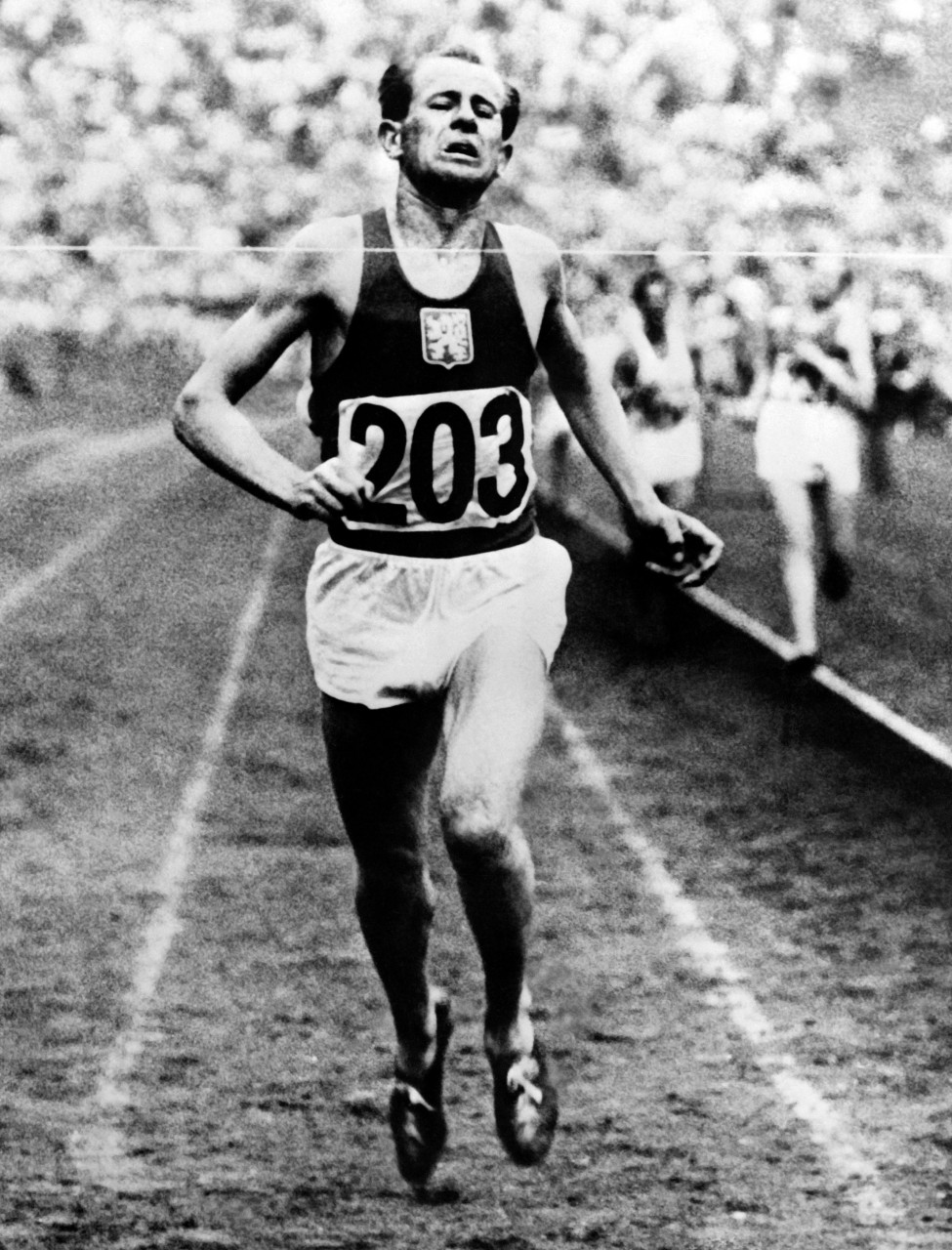 Zatopek je osvojio četiri zlatne medalje na Olimpijskim igrama 1948. i 1952. U karijeri je postavio 20 svetskih rekorda na distancama od 5000 do 30000 m.