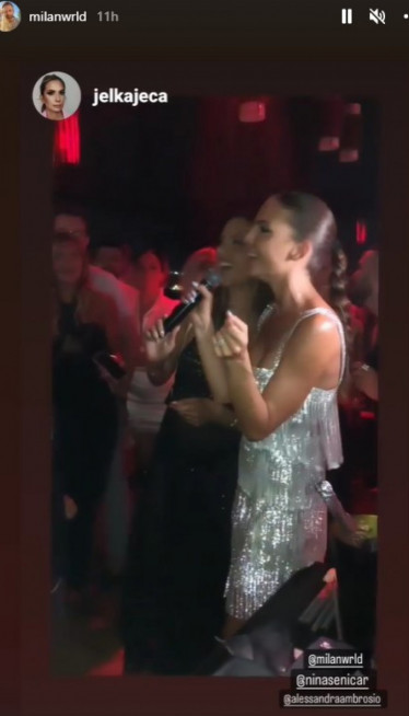 Kakva prilika, takva i fešta! A Alesandra Ambrozio je blistala u izazovnoj crnoj haljini pa je i otpevala rođendansku pesmu na maternjem portugalskom jeziku, najpre solo, a zatim u duetu sa Ninom Seničar. Zanosna je bila - kako se uostalom i očekuje od nje.
