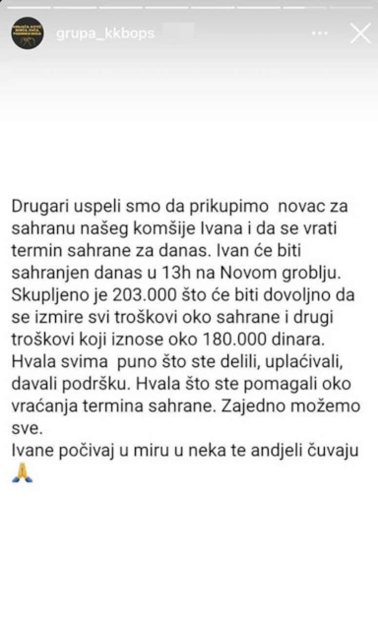 Nakon sedam dana od smrti, Ivan je sahranjen uz pomoć građana koji su širom Beograda prikupljali novac za grobno mesto.