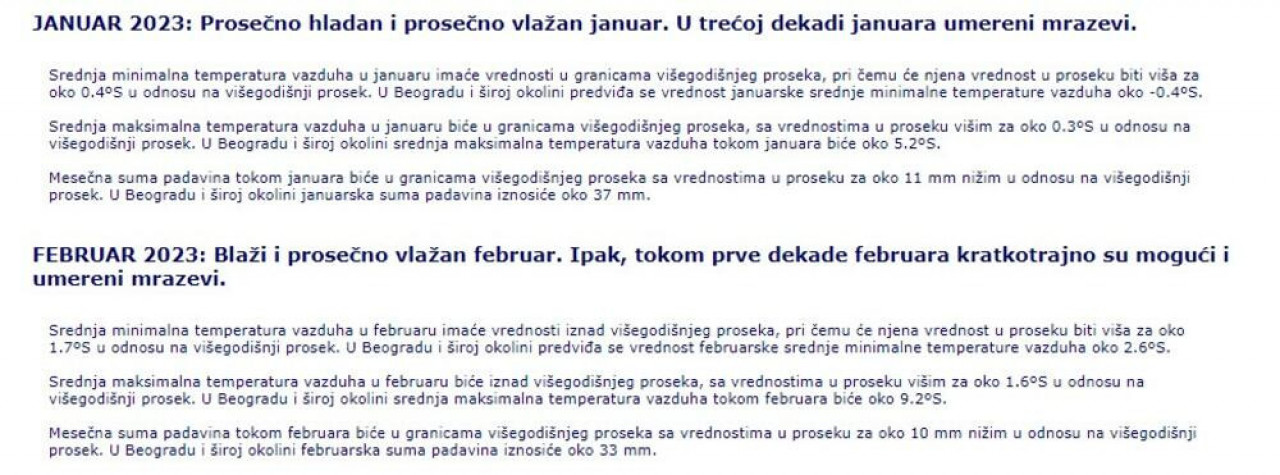 U celoj Srbiji se očekuje decembar sa srednjom temperaturom vazduha iznad višegodišnjeg proseka i odstupanjem do dva stepena.