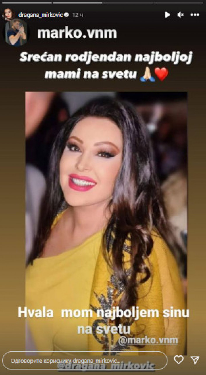 - Srećan rođendan najboljoj mami na svetu - poručio je Marko, a Mirkovićeva nije mogla da ostane ravnodušna.