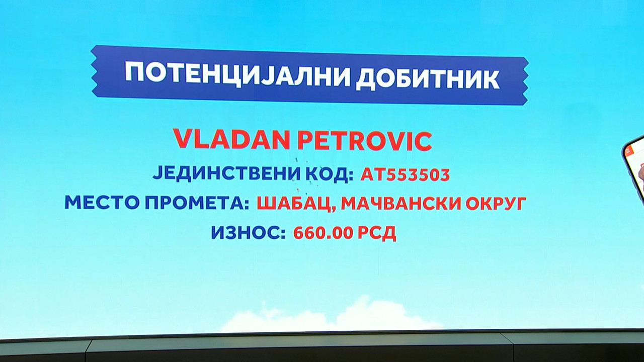 Prvi dobitnik stana u naselju Zemusnke kapije je Vladan Petrović iz Šapca koji je stan dobio pomoću računa u vrednosti od 660 dinara. Jedinstveni kod računa je AT553503.