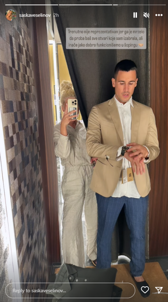 - Trenutno nije reprezentativan, jer ga je mrzelo da proba baš sve stvari koje sam izabrala, ali inače jako dobro funkcionišemo u šopingu - napisala je Saška.