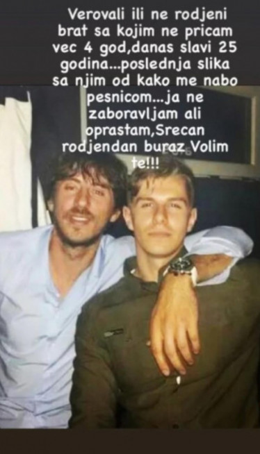 "Verovali ili ne, rođeni brat sa kojim ne pričam 4 godine danas slavi 25 godina... Poslednja slika sa njim od kako me nabo pesnicom. Ja ne zaboravljam, ali opraštam. Srećan rođendan buraz, volim te", napisao je Boris prošle godine uz fotografiju sa Mihajlom, što znači, ako se nisu pomirili, ne pričaju već pet godina.