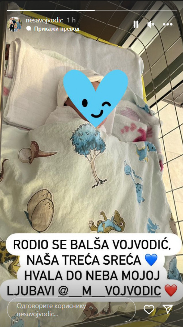 - Rodio se Balša Vojvodić, naša treća sreća. Hvala do neba mojoj ljubavi- napisao je u opisu fotke tek rođenog sina.