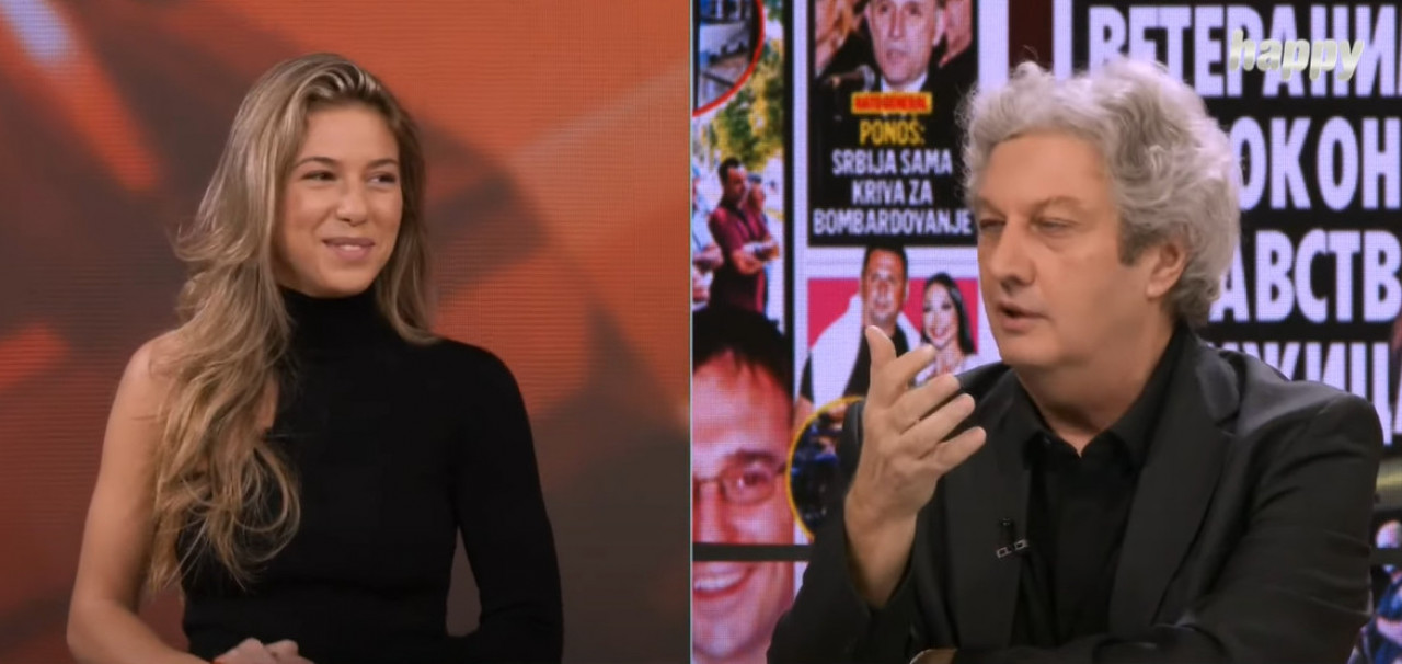 - Ovu emisiju gledaju pametni, pošteni ljudi, ali gledaju i oni malo poremećeni. I evo poruke koje dobijamo od jutros... Nećete verovati. Puna je Srbija raznih manijaka. I nemoj da se ljutiš, ti si dete, ali šta razni ljudi razmišljaju, šta bi priželjkivali, i evo, kaže: "Šta Kruna nosi ispod suknje?". Evo, to traže razni manijaci - rekao je voditelj.