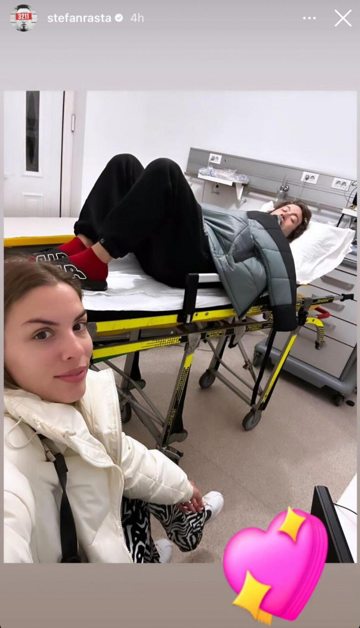 On je kod lekara došao sa devojkom Marijom Balaban, koja se ni na sekund nije odvojila od repera. To su pokazali i na fotografijama. Marija je uslikala selfi s Rastom, dok on leži. Prekriven je jaknom, a na nogama ima papuče što je jasan pokazatelj koliko su bolovi bili jaki da nije imao snage ni da obuje patike.