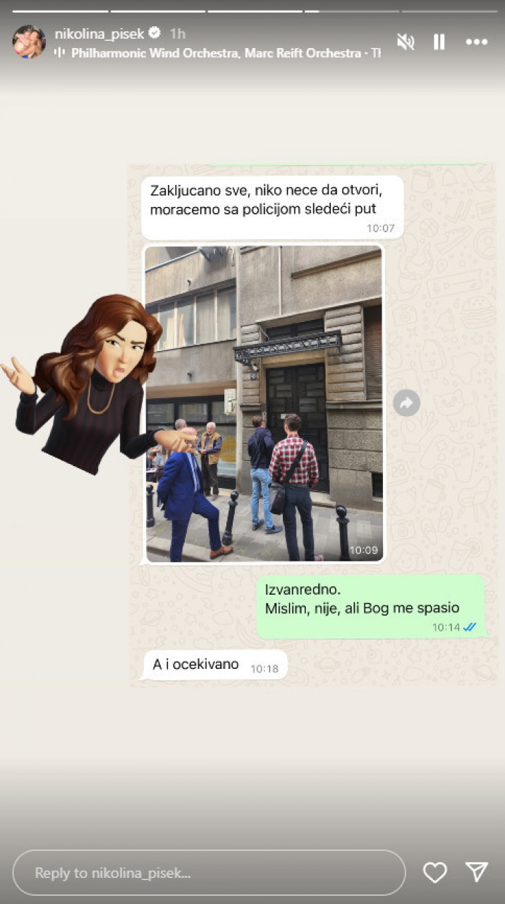 - Zaključano sve, niko neće da otvori, moraćemo sa policijom sledeći put - bila je poruka koja je stigla Nikolina, na šta je ona odgovorila: