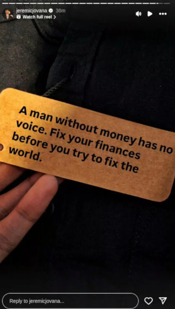 - Muškarac bez para nema glas. Popravite svoje finansijsko stanje, pre nego što probate da promenite svet - glasila je poruka.